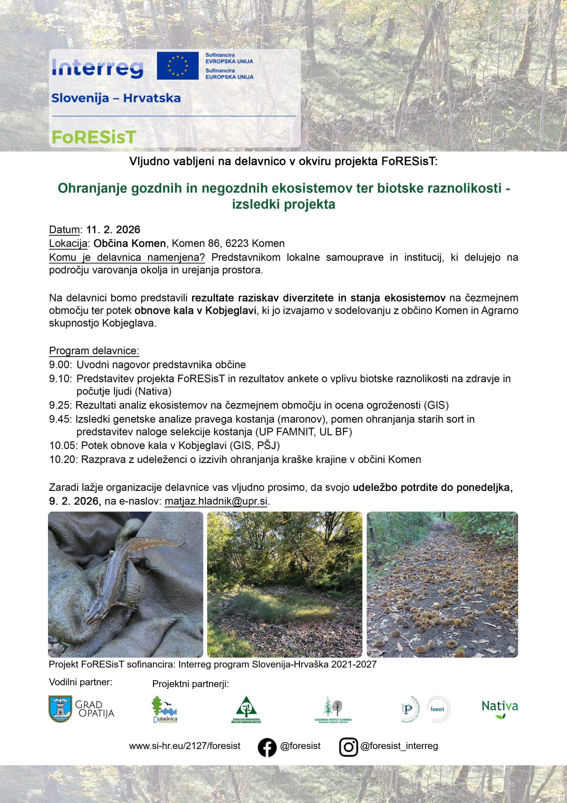 Vljudno vabljeni na delavnico v okviru projekta FoRESisT: